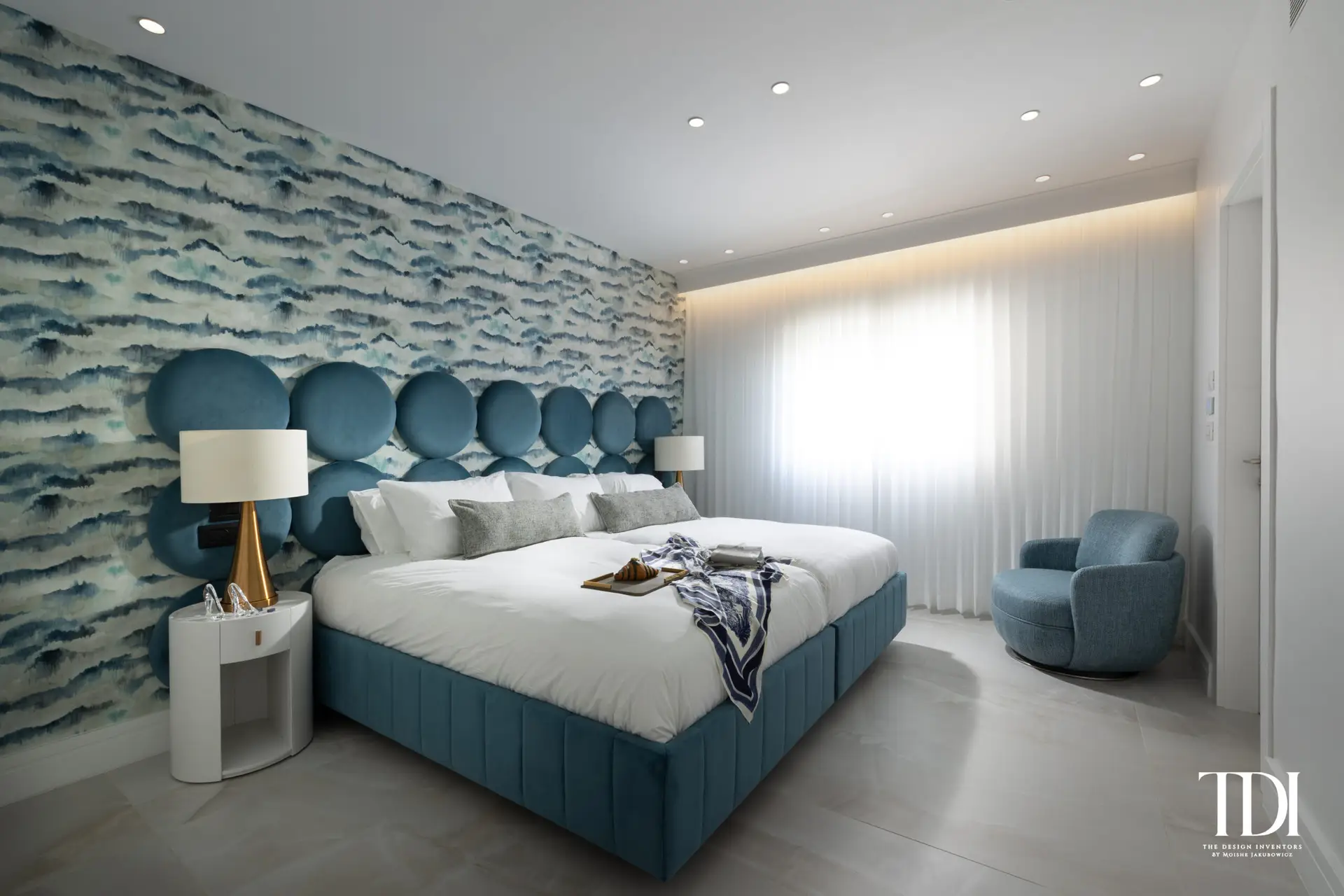 Set by the iconic King David, this home channels the spirit of an endless getaway. Light filters softly through sheer drapery, warming natural stone and wood with a quiet glow. Playful patterns and fluid forms bring a touch of whimsy, while tactile finishes and thoughtful contrasts make each space feel lived-in yet elevated. Bedrooms hint at boutique-hotel indulgence, with bold headboards and details that spark curiosity. The atmosphere is effortless; An inviting mix of calm and character…Like a retreat you never want to leave…