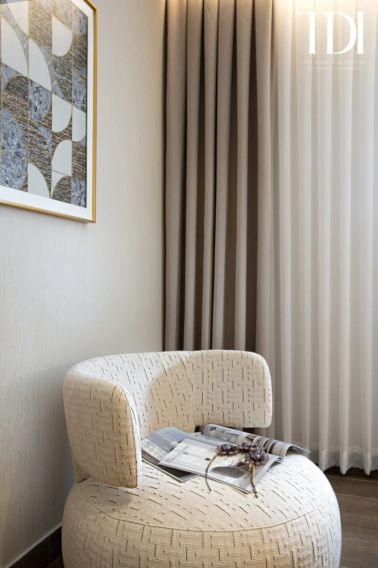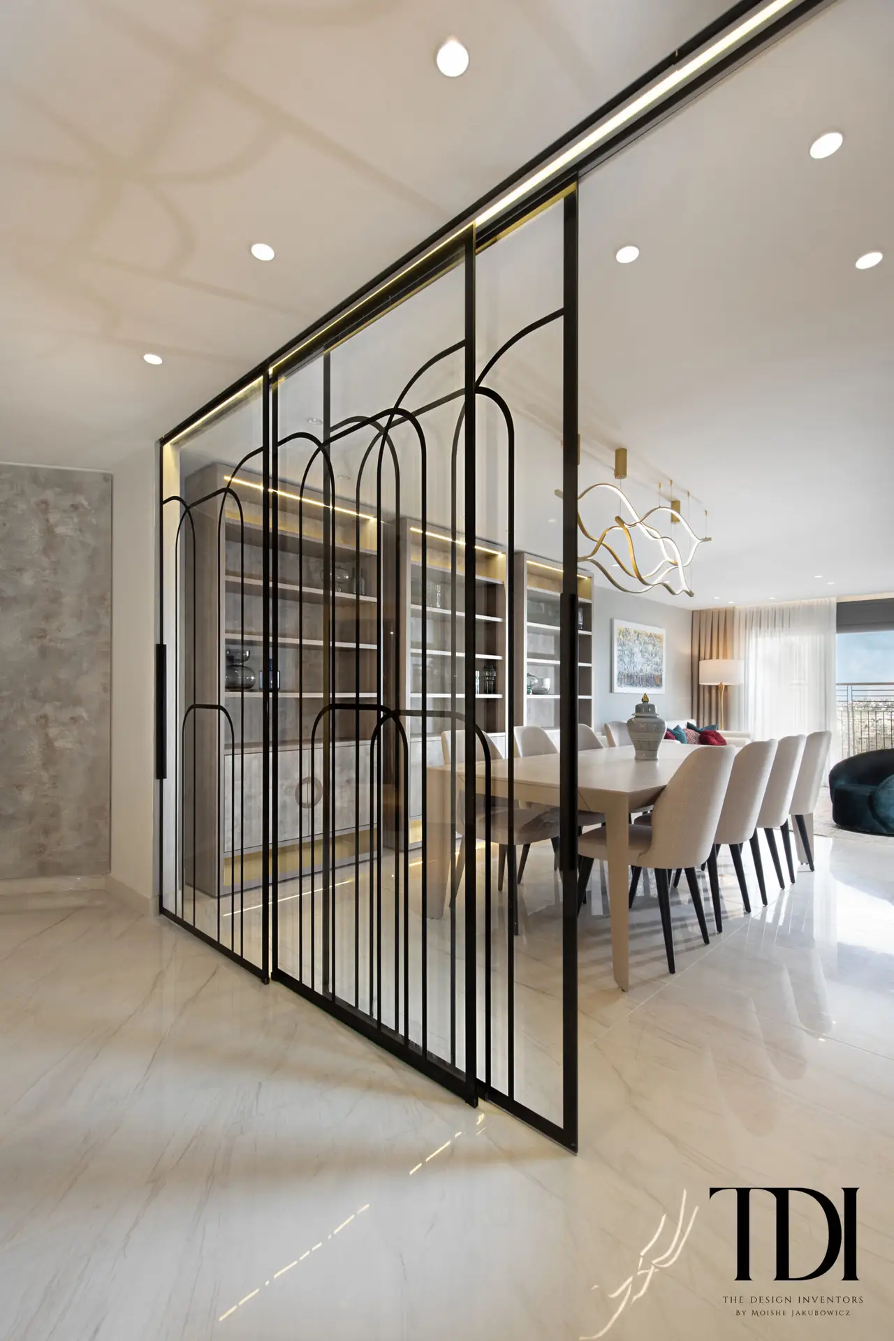 This residence is defined by precision and poise through clean architectural lines balanced with composed forms and layered textures. Ironwork partitions lend rhythm and geometry, transforming the home with quiet strength. In the living areas, structure and comfort are held in harmony, where refined furnishings meet bold architectural detailing. The master suite continues the narrative with paneled walls, designer finishes, and a palette of soft neutrals enriched by deep accents. More than a home, it is a study in proportion and detail, an understated benchmark for modern design.