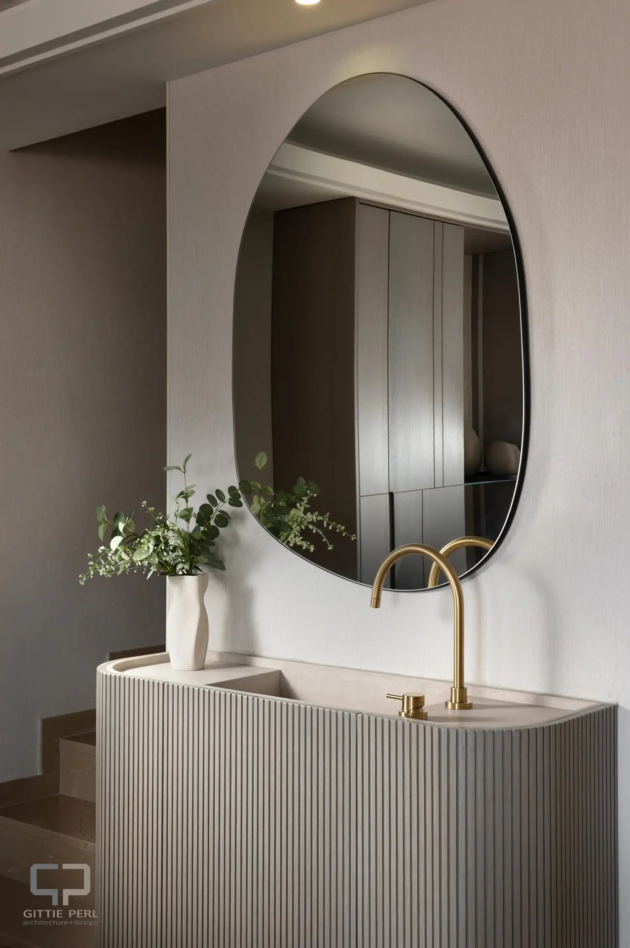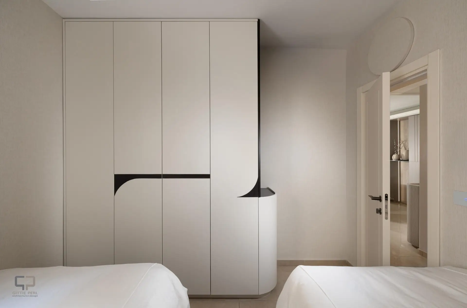 In the Jerusalem Stone Apartment, wallpapers with soft textures and warm tones of beige, cream, and sand were incorporated to envelop the living areas with a sense of calm, warmth, and relaxed elegance. The wallpapers added an embracing design layer that enriched the depth of the walls and highlighted the authentic charm of the Jerusalem apartment. Combined with soft lighting and refined detailing, the result is an intimate and inviting atmosphere — full of presence yet serene and peaceful, a warm sense of home in the heart of the city.
