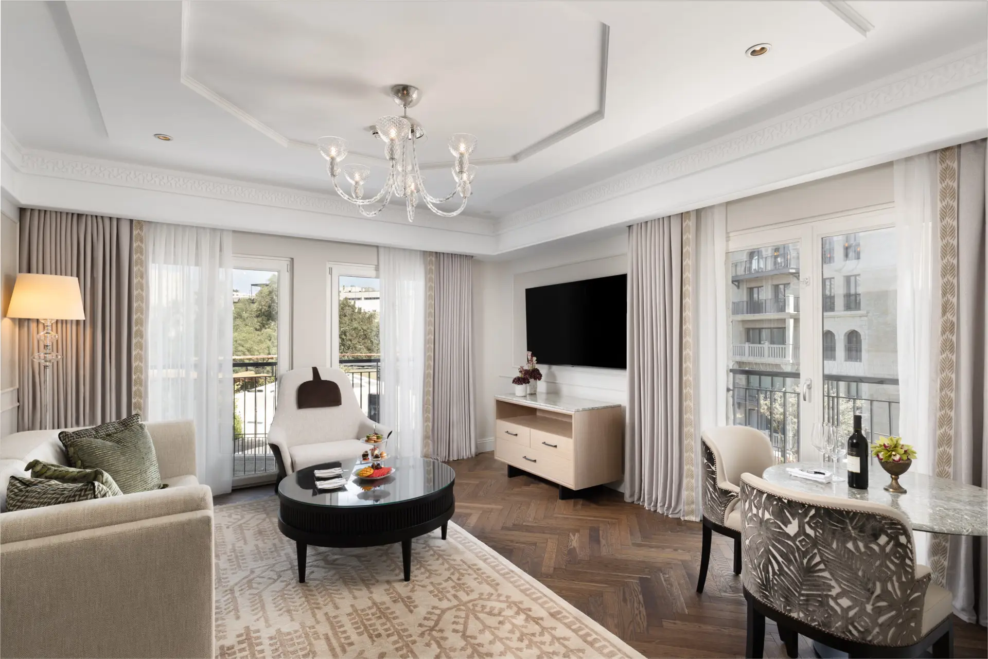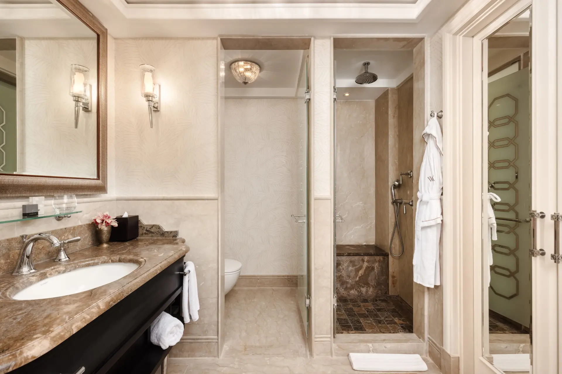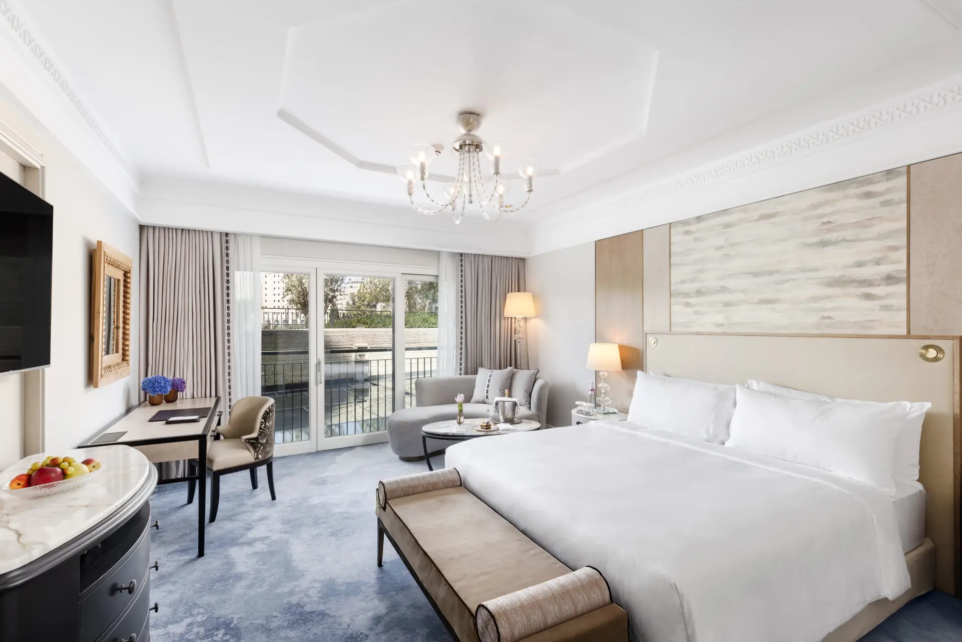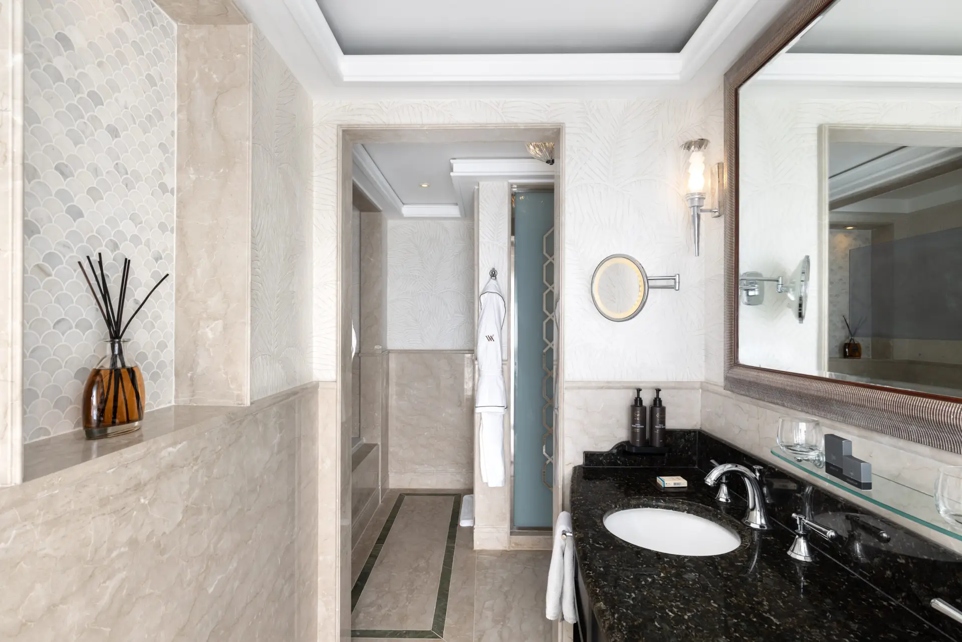 At the iconic Waldorf Astoria Jerusalem, Lerer Wallpaper was entrusted with the complete design and installation of wallcoverings throughout the hotel – from the grand public areas to the guest rooms, bathrooms, and even the interior and exterior finishes of the wardrobes.
